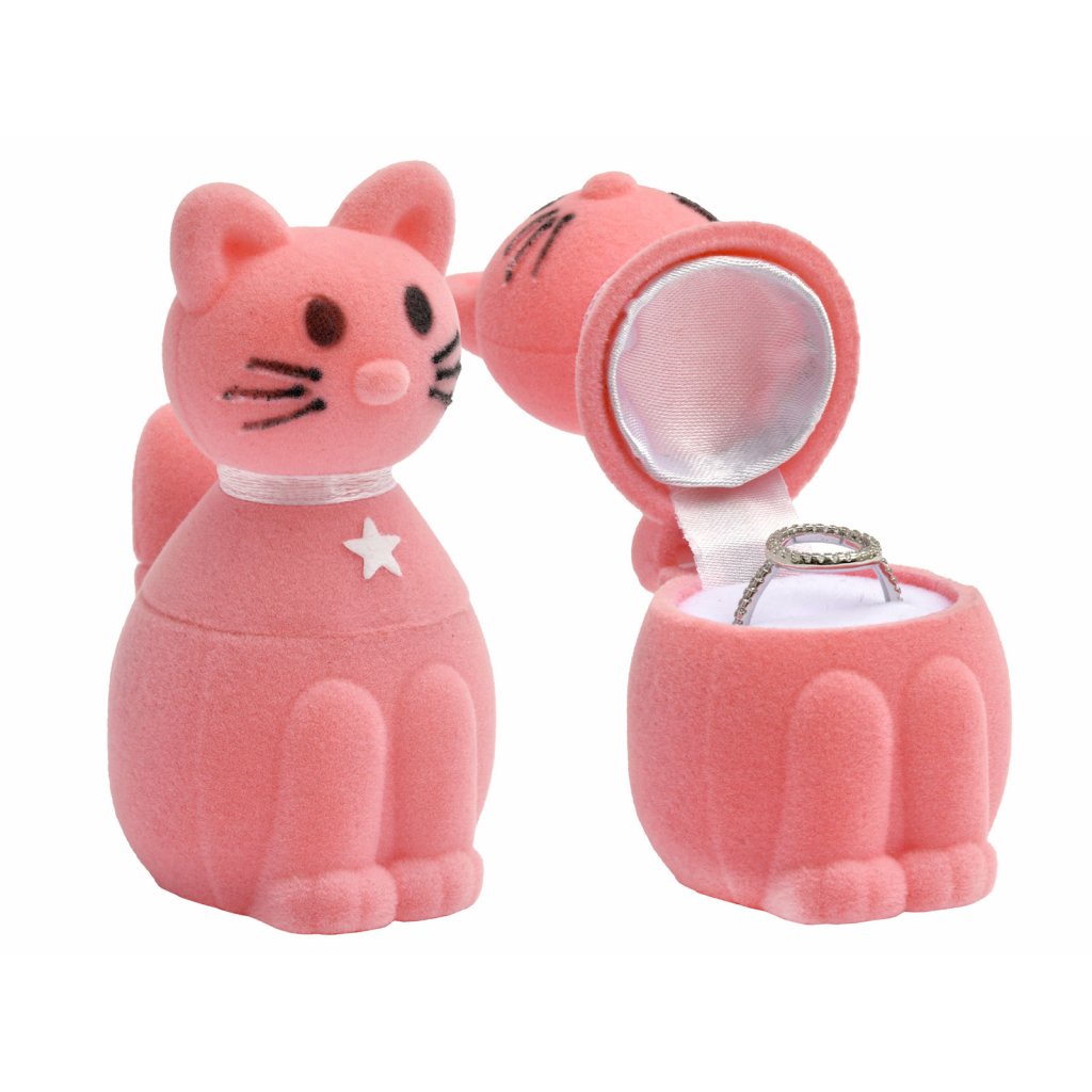 Roztomilá ružová krabička mačka je vhodná na prsteň, prívesok alebo malé náušnice.