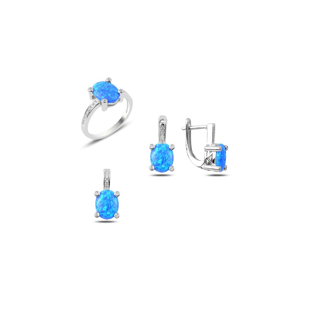 Luxusná sada šperkov s modrým opálom a zirkónmi