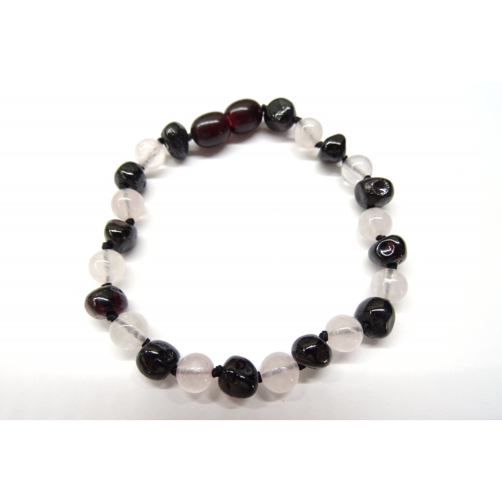 Náramok pre ženy je ručne vyrobený v Litve z rubínu jantáru a ruženínu. Kamienky sú vyleštené a medzi každým kamienkom je uzlík. Korálky sú navlečené na šnúrke a náramok je opatrený závitovým zapínaním. Dĺžka 18 cm.