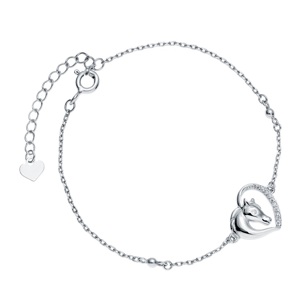 Strieborný náramok kôň v srdci s bielym okom