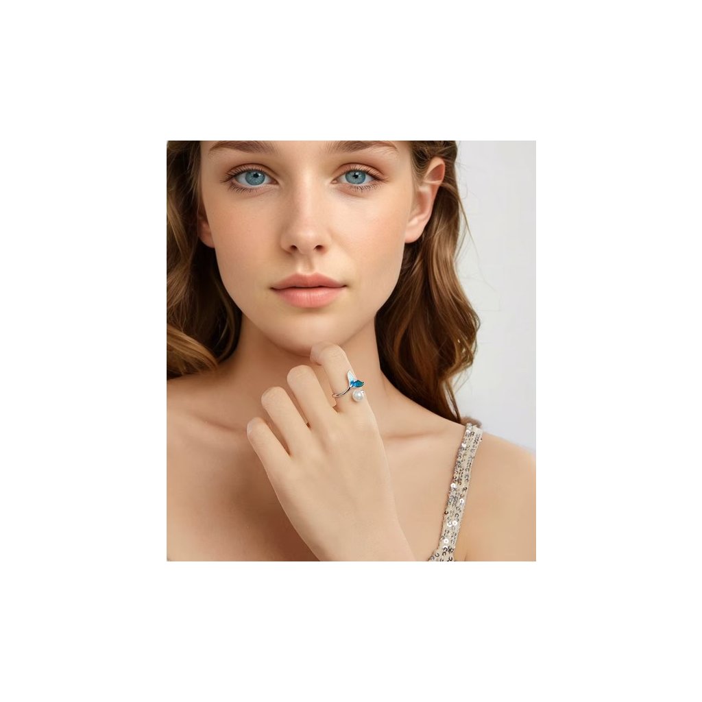 Strieborný otvorený prsteň s perlou Morská panna